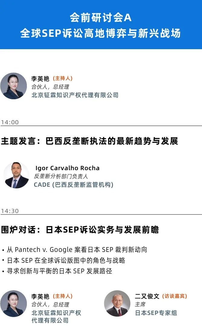 이번세미나에서 정림(Li & N)특허사무소 소장 이영연 변리사는 전문적 시각으로 핵심 의제에 깊이 참여겠습니다.《글로벌 SEP 소송 격전지와 신흥 시장》 세션의 좌장을 맡아 진행을 담당하며, 일본 SEP 전문가 그룹과 함께 《일본 SEP 소송 실무 및 전망》 에 관한 심도 있는 대화를나눌 것입니다.이영연 소장은 풍부한 업계 경험과 국제 실무 경험을 바탕으로, 해당 의제에 대한 전문적 가이드와 깊이 있는 해설을 제공할 것입니다.